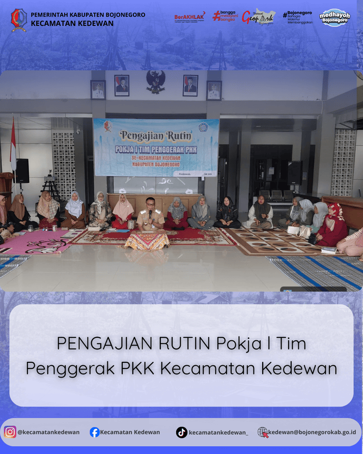 PENGAJIAN RUTIN POKJA I TIM PENGGERAK PKK KECAMATAN KEDEWAN Dalam upaya memperkuat keimanan dan mempererat silaturahmi, Pokja I Tim Penggerak PKK Kecamatan Kedewan kembali melaksanakan kegiatan...