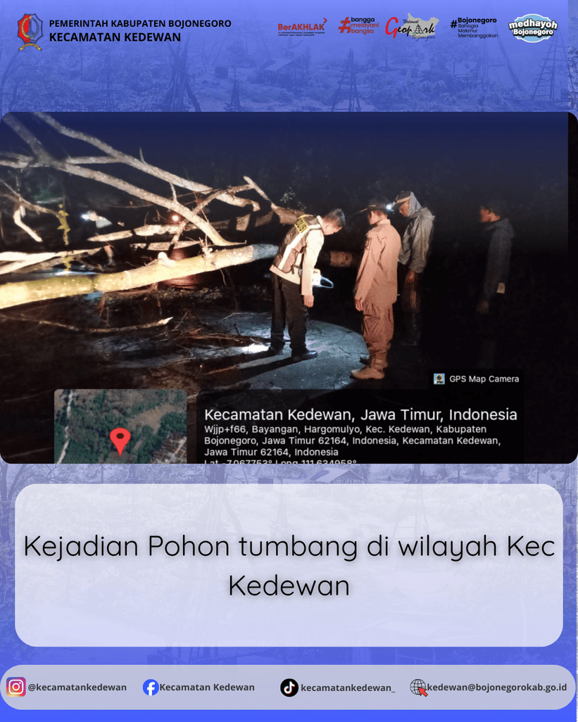 Telah terjadi pohon tumbang di wilayah Kecamatan Kedewan pada Minggu, 22 Februari 2026 sekitar pukul 23.30 WIB. Laporan diterima pukul 23.40 WIB dari Sdr. Winar...