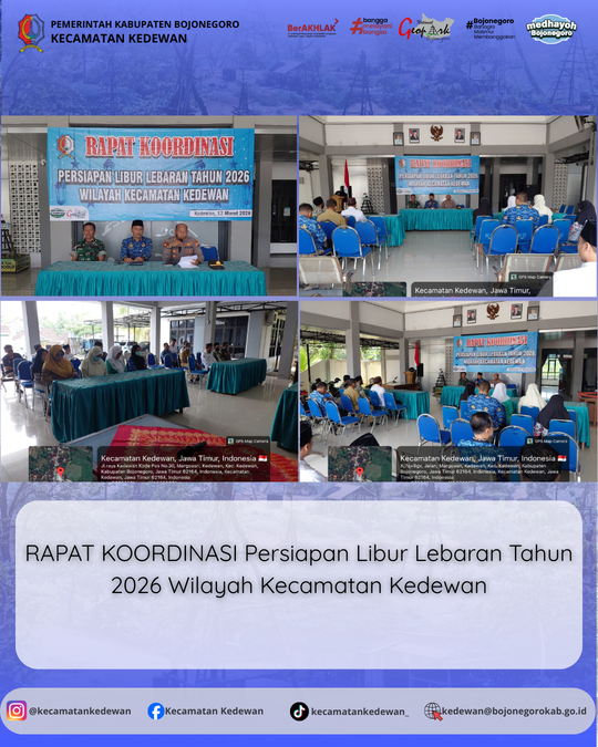 Rapat Koordinasi Persiapan Libur Lebaran Tahun 2026 Kecamatan Kedewan 🤝✨ Bertempat di Pendopo Kecamatan Kedewan, telah dilaksanakan rapat koordinasi dalam rangka persiapan menghadapi libur Hari Raya...